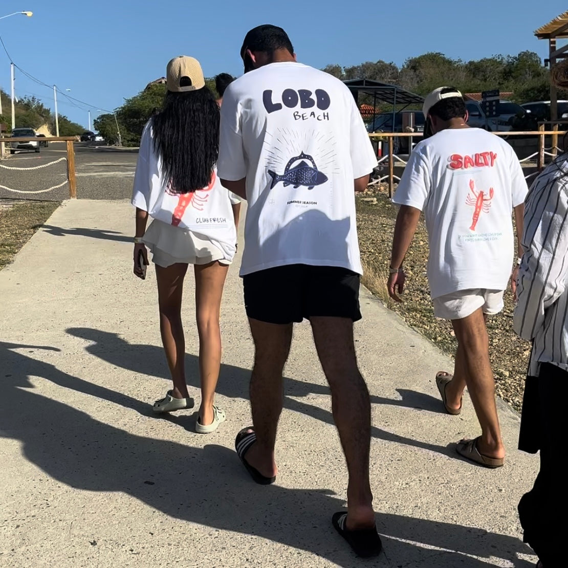 Lobo Beach Blue Fish White Oversized Tee